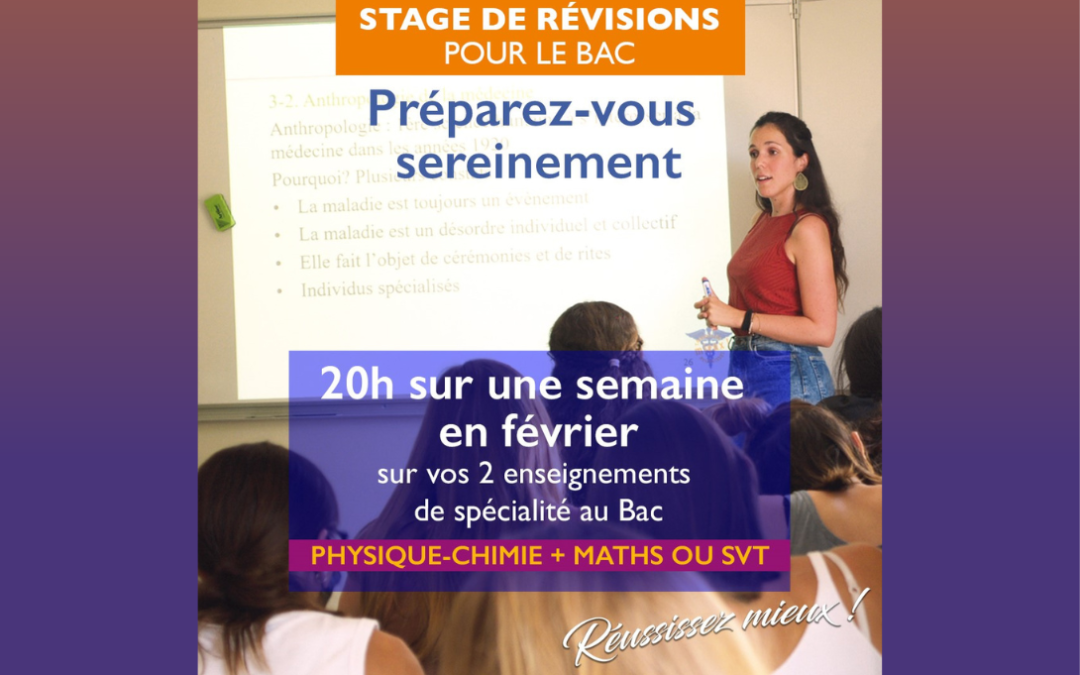 Nous proposons ainsi du 20 au 24 février un STAGE DE REVISION pour le BAC sur vos deux enseignements de spécialité au Bac: