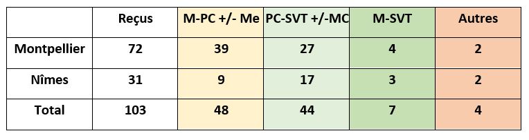Parmi nos 103 étudiants reçus en Médecine, Montpellier et Nîmes confondus :