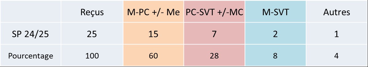 En 2024/2025, parmi nos 25 reçus (sur 30 places) :