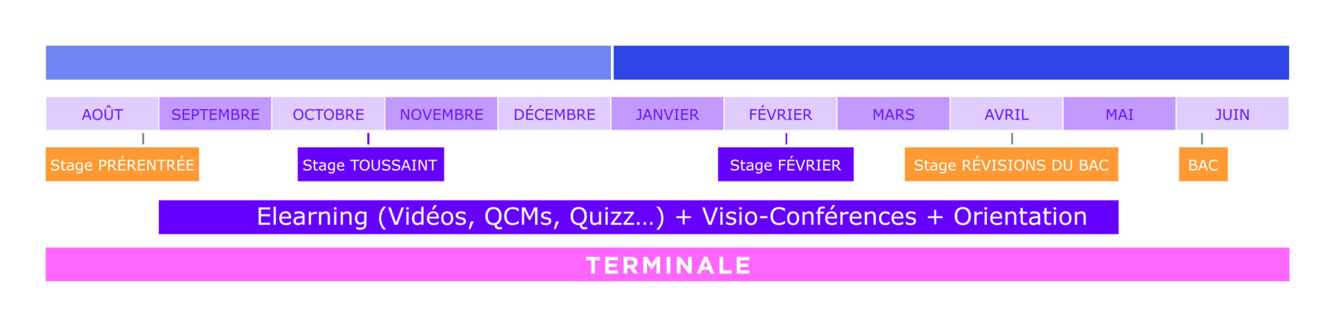 2- Deux stages complémentaires pour renforcer ses bases du secondaire et optimiser Parcoursup (en jaune dans la frise ci-dessous)
