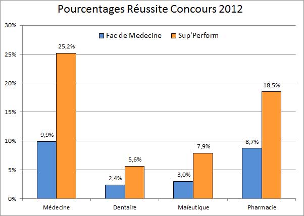 Au total 29% des étudiants de la faculté ayant réussi un concours étaient inscrits à Sup’Perform alors que seulement 12% des étudiants de la fac suivaient notre préparation.